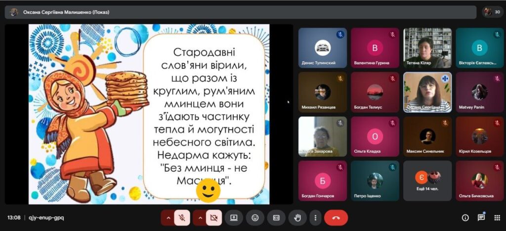 У ДНЗ «Краматорське ВПМУ» 16 лютого Оксаною МАЛИШЕНКО був проведений виховний захід на тему «Масляна іде». Студенти ознайомилися з традиціями святкування Масляної в Україні. Захід розпочався з розповіді про походження цього свята та його значення як символу прощання із зимою. Слухачі дізналися, чому саме млинці є головною стравою Масляної та що вони символізують сонце. Під час бесіди згадували народні звичаї, ігри та обряди, пов’язані з цим тижнем. Студенти дізналися про кожен день Масляного тижня та його назву. Також говорили про важливість прощення та добрих стосунків між людьми. Атмосфера заходу була теплою та доброзичливою. Виховна година сприяла розвитку поваги до народних традицій. Наприкінці заходу зробили висновок, що народні свята об’єднують людей. Захід подарував гарний настрій і відчуття наближення весни.
